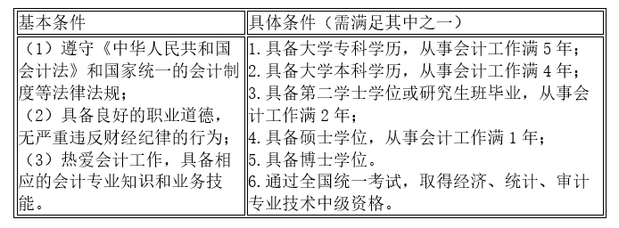 2021年中级会计职称考试报考条件
