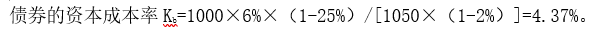 【例题•计算题】某企业以1050元的价格,溢价发行面值为1000元、期限5年、票面利率为6%的公司债券一批。每年付息一次,到期一次还本,发行费用率2%,所得税税率25%。