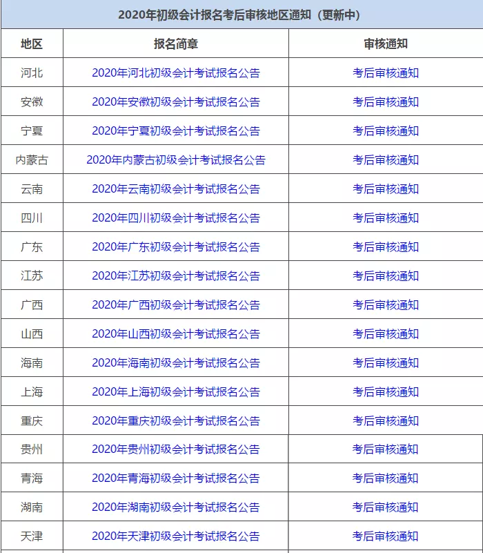 2020年初级考后审核地区通知