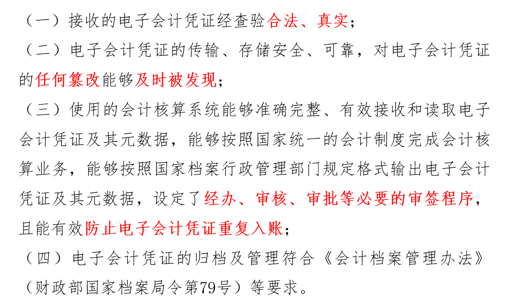 3、可以仅使用电子凭证入账,但要求很高,需要同时满足以下4点: