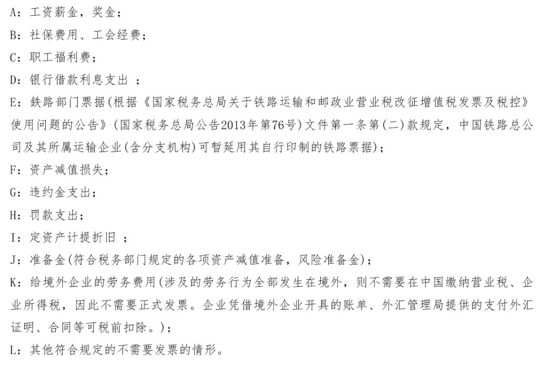 那么还有一些不需要发票也可以税前扣除的。如下: