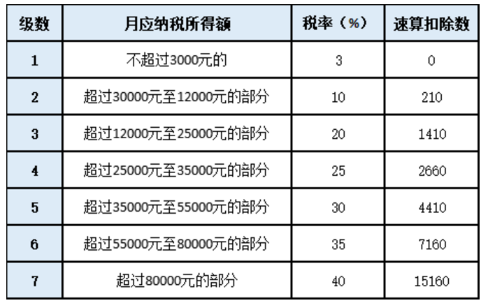 确定适用税率和速算扣除数:48000÷12=4000(元)