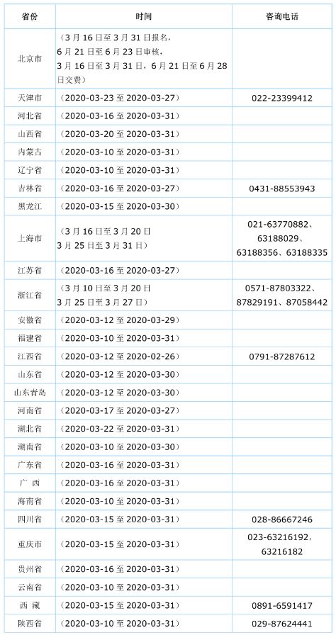 全国各省2020年中级会计职称考试报名时间及审核方式汇总