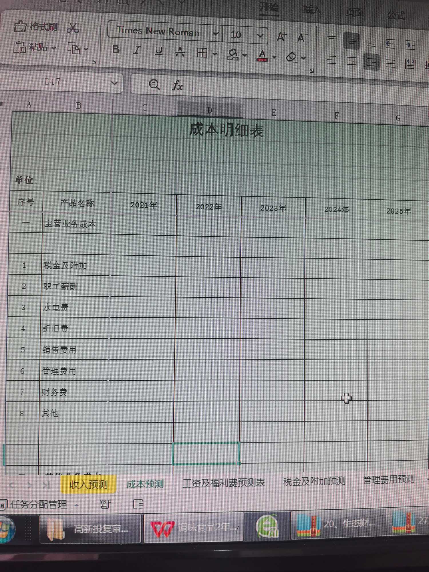 主营业务成本可以对应利润表中的营业成本,税金及附加对应的是利润表中税金及附加,折旧费、职工薪酬、水电费需从账务里汇总,销售费用、管理费用、财务费都是对应在利润表的销售费用、管理费用、财务费用,其他通常可归类上述未涵盖的费用